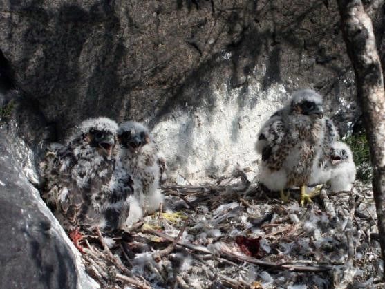 Ve střední Evropě snáší samice nejčastěji na konci března až začátkem dubna 3 až 4 vejce. Sedí na nich cca 29 až 30 dní, samec ji občas střídá. Během hnízdění bývá velmi citlivá na vyrušování a snůšku může i opustit. Samice si buď potravu sama uloví, když ji samec vystřídá v sezení, nebo jí samec nosí kořist na hnízdo. Po vylíhnutí se o mláďata na hnízdě stará asi 14 dní jen samice, samec přináší kořist, poté se střídají. Mláďata opouštějí hnízdo po 35 až 42 dnech, ale rodiče je nadále krmí ještě aspoň dva měsíce. Sokoli pohlavně dospívají ve dvou až třech letech.